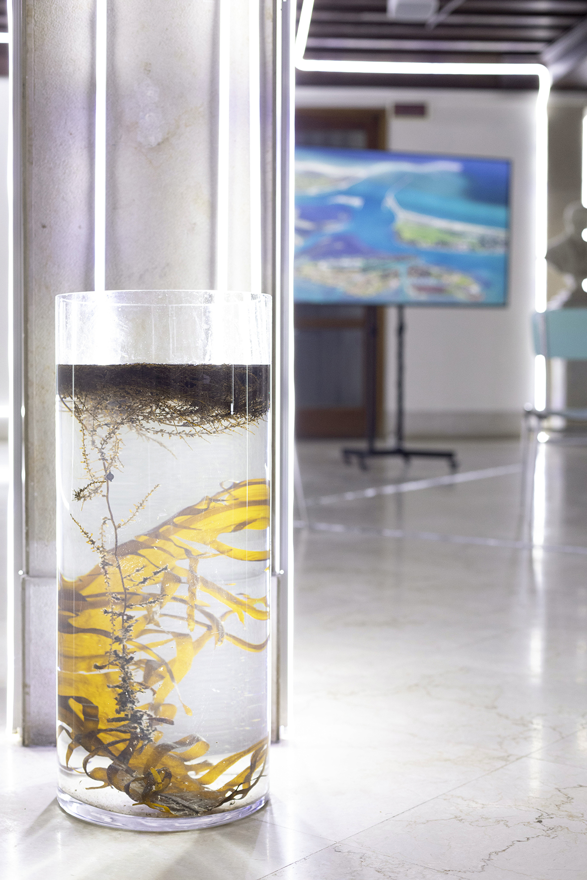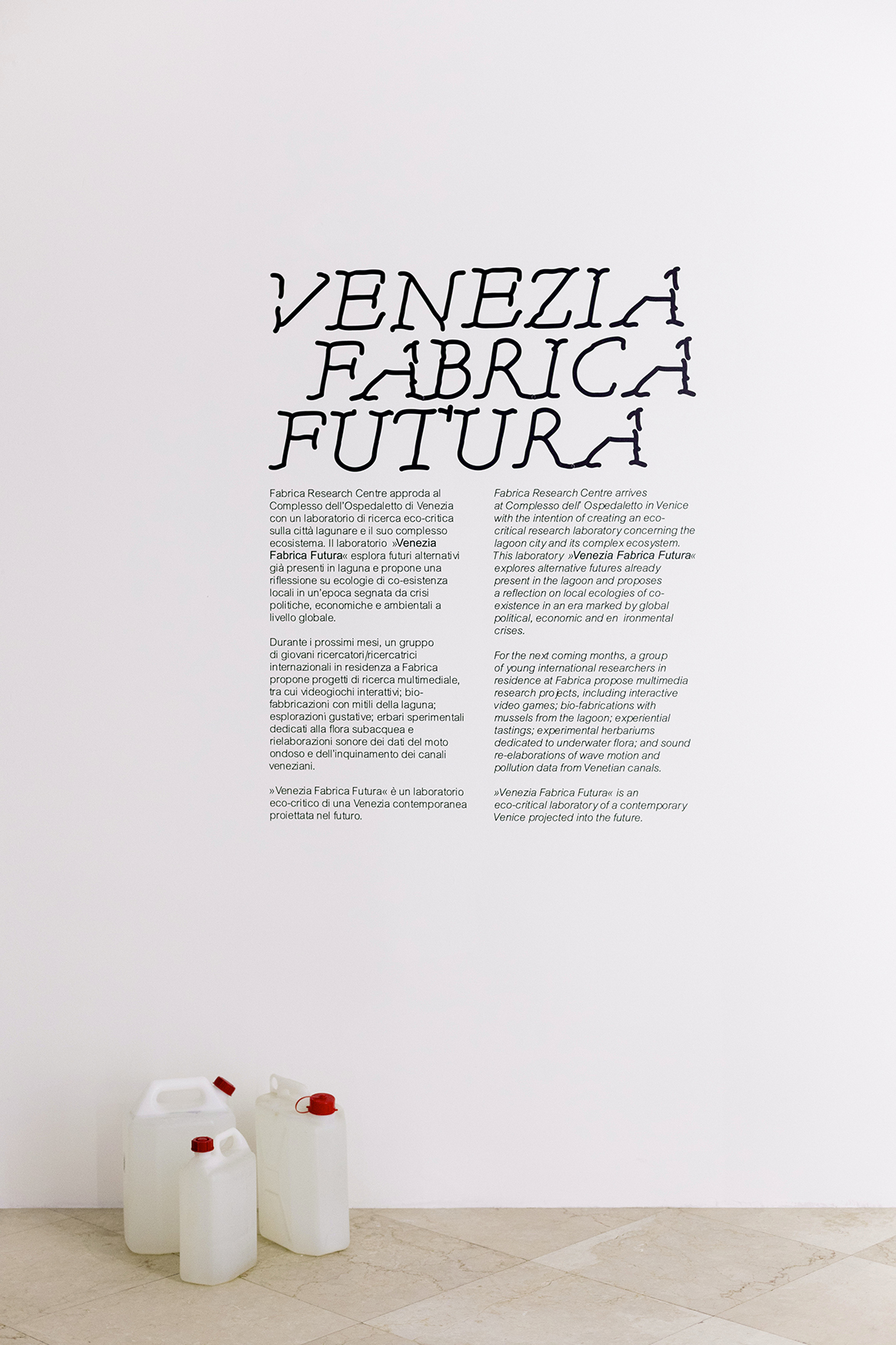 "Venezia Fabrica Futura" explores alternative futures already present in the Venetian lagoon and proposes a reflection on local ecologies of co-existence in an era marked by political, economic, and environmental crises. A group of young international researchers previously in residence at Fabrica Research Centre proposes multimedia research projects, including interactive video games; bio-fabrications with mussels from the lagoon; experiential tastings; experimental herbariums dedicated to underwater flora and sound re-elaborations of wave motion and pollution data from Venetian canals.