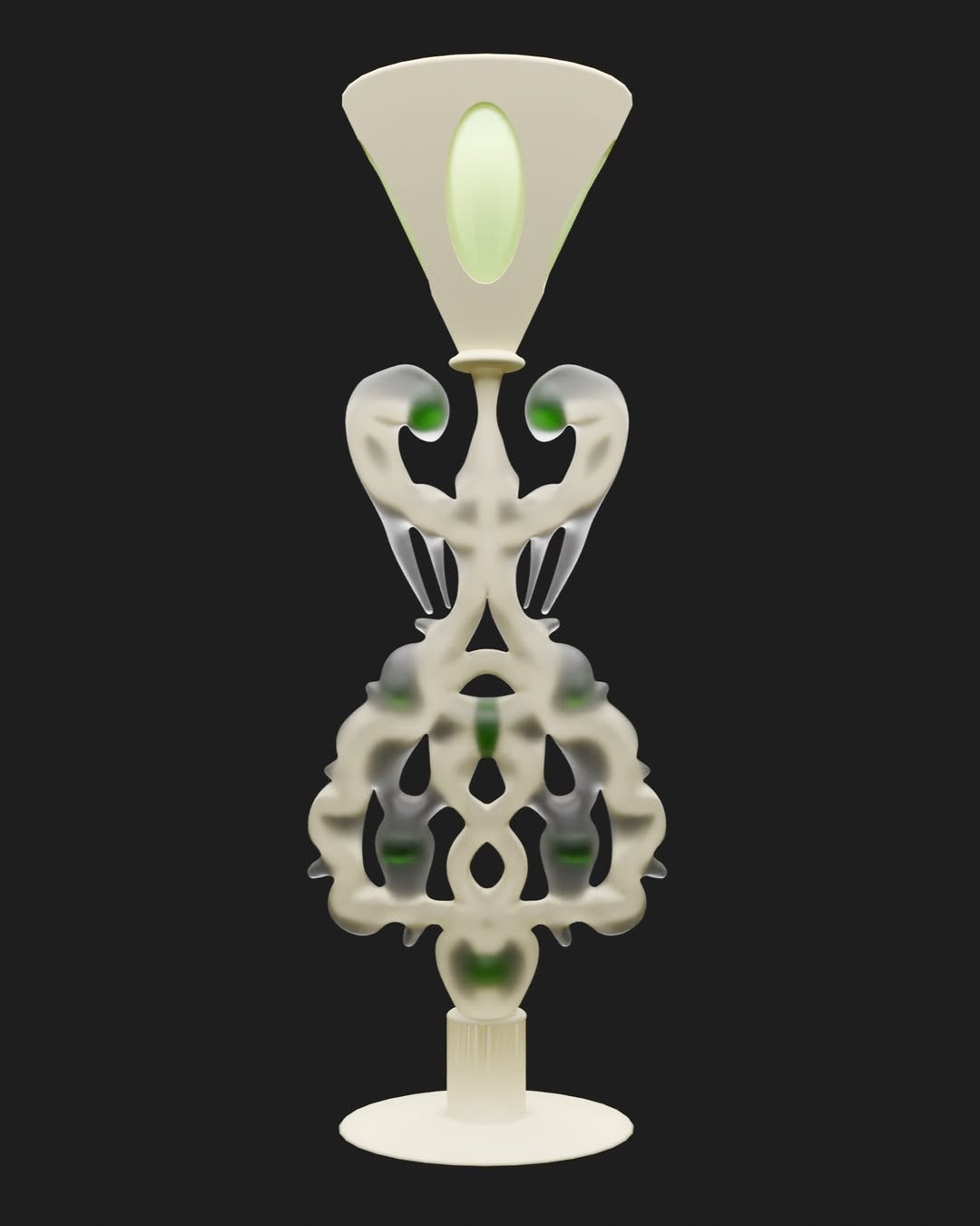 Rehearsing regeneative ways of production, we developed the lantern - an aquatic light for regenerative futures. A tentacular seaweed-based lace crafted by Alicia Valdés intertwines, binding two shells printed with our hybrid material, a blend of PHA and powdered mussels. Nestled within the lantern's handle, a touch-light bulb, akin to a luminous pearl, awaits the user's touch to ignite the aquatic glow. Born from the liquid depths, this lantern can return to the sea, completing its cycle in a marine environment, weaving a circular narrative of materials.